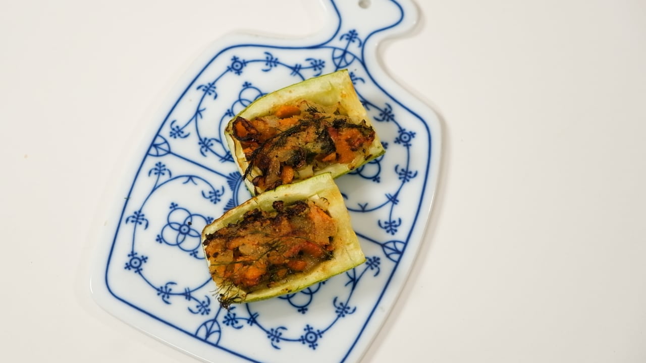 Kabakları dikine kesip içlerini çıkarın, bir kenara alın. Soğanları küp küp doğrayıp soteleyin, ardından havuçları atın. Soteledikten sonra kabağın ayırdığınız iç kısmını da soteleyin. Kereviz sapı artıklarını ekleyin. Sarımsakları ekleyin, Baharatları ilave edip altını kapatın. Kenara alın. Kabakların içini sebze harç ile doldurun. Üzerine kaşar peyniri rendeleyip Altus Ecofryer haznesine dizin. 180 derecede 6-8 dakika pişirin. Kıyılmış dereotu ile süsleyip servis edebilirsiniz. Afiyet olsun!
