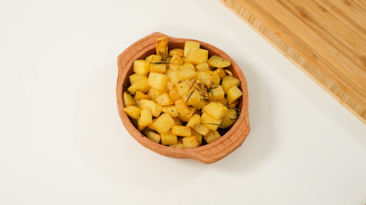 Patatesleri iyice yıkayın ve fırça yardımı ile kabuklarını temizleyin. Küçük parçalar halinde doğrayın. Biberiyeyi dallarından ayıklayın. Baharat ve zeytinyağını da ekleyip iyice harmanlayın. Altus Ecofryer haznesine alın. 200 derecede 10-12 dakika pişirin. Afiyet olsun!